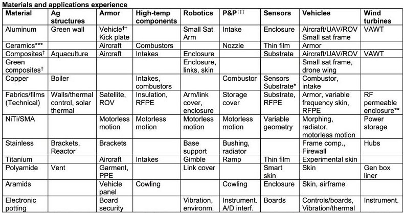 | Doped ceramic material developed at ARSI, using new process preparing ceramics for sensors and thin film deposition (right). Hand-built aluminum airplanes are coming back. ARSi is one of the few firms with the ability to design and assemble real airplanes for research, testing, and unmanned operations. Center section wing assembly (below). |